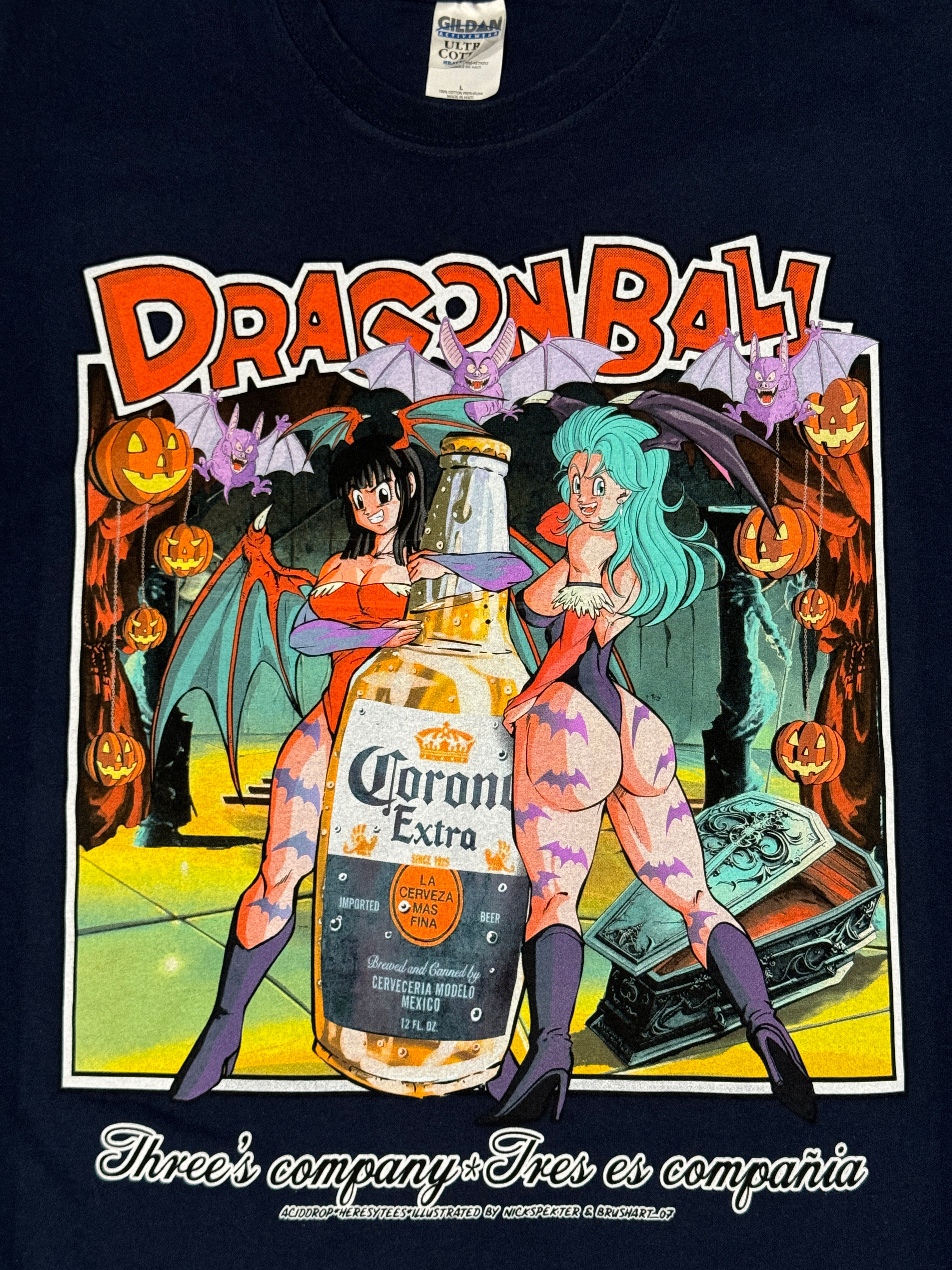 Screen Printed on a Navy Blue Gildan Ultra Cotton Heavyweight Blank Size L Chest 20.8" Wide Length 27.5"